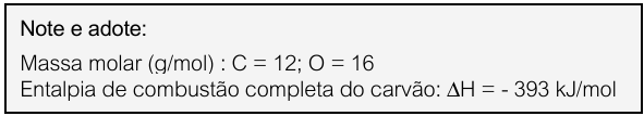 Considerando que toda a energia para gerar essas imagens fosse proveniente da combustão completa de carvão podemos utilizar a entalpia de combustão do carbono, fornecida nos dados, para calcular a massa total de CO2 () gerado: