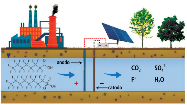 a) (i) O objetivo do processo representado é a remediação (descontaminação) ambiental de águas subterrâneas contaminados por compostos orgânicos persistentes (como o C8 e seus "parentes").